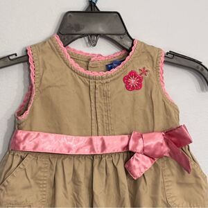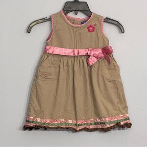 Oshkosh B'gosh | Vintage Y2K Embroidered Lace Trim Tan Pink Jumper Dress Shirt