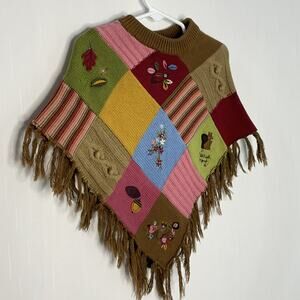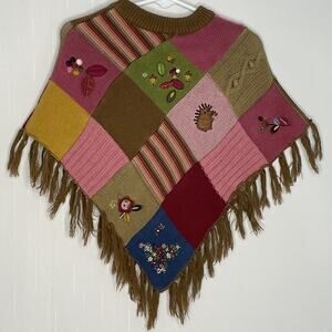 Very good used condition. Adorable Poncho has it all! Vintage,Y2K, fall colors, western, cowgirl, patchwork, fringe, embroidered, woodland, floral, appliqués and even a hedgehog and squirrel 😊 pull over poncho. 100% cotton. No stains or holes. Minor wear. Check measurements in pictures, vintage sizes vary. Size 2T, smoke free home