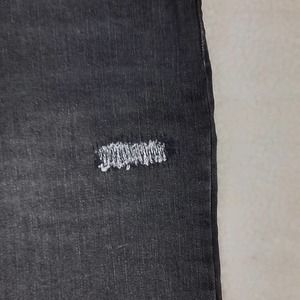 These denim shorts are comfortable, breathable, and have generous stretch. They feature a classic 5-pocket design, a snap front, and adjustable waist tabs. They are on trend with tasteful distressing including a faded black color, faux tearing, and raw hems. These denim shorts are new with tags.