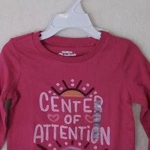 This 100% cotton tee is lightweight and breathable. It features a crew neck, long sleeves, and relaxed fit. The pink tee has a cool rainbow and sunshine graphic that says "Center of Attention." This T-shirt is new with tag.