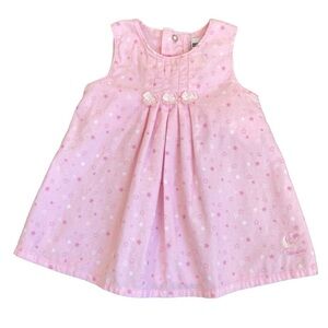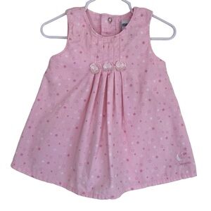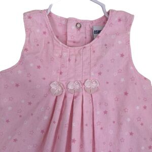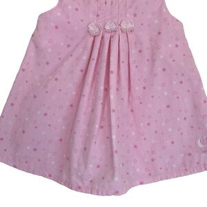 Oshkosh Pink and White Star Print Corduroy Dress w Bows Snap Closure Sz 3-6 mo