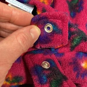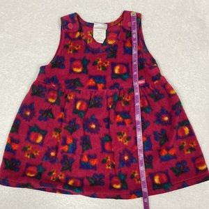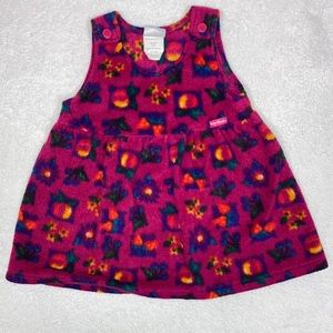 VGuc pfsf nice bright vibrant colors dark magenta color with peaches, strawberries and flowers strap snap 24m no stains, tears or holes very slight wash wear