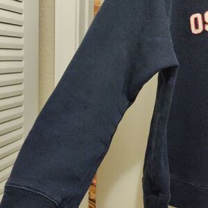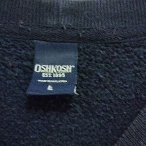 Navy blue Oshkosh crewneck sweatshirt. Embroidered red and white Oshkosh spell out on front. Some minor flaws, no major flaws. See photos for details.