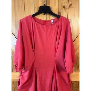 Oshoplive Salmon Linen Blend Zip Up Maxi Dress. Has 3/4 Kimono Sleeves with elastic cuffs. Gathered waist creating a pleated look. Has pockets. NWT Size Large (5603) Measurements: Pit to Pit 21” Length 54” Waist 42”