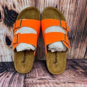 Ositos Bright Neon Orange Buckle Slide Sandals NIB Size 8