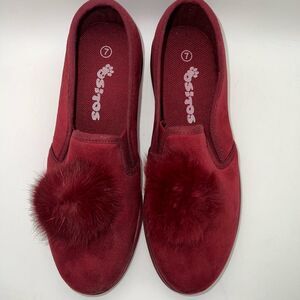 Ositos CAL-02K Burgundy Slip On Pom Pom Sneakers Loafers Size 7 Brand New