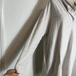Oska Oatmeal Cowl Neck Blouse textured lines Size 2(US8/10), made in Bulgaria, relaxed fit, oversized, lagenlook, art to wear, minimalist, contemporary.