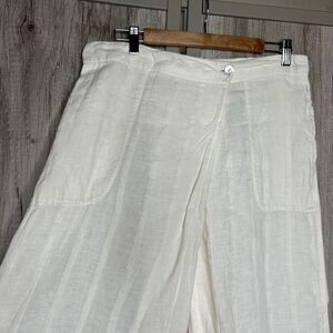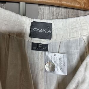 Oska Pants Size 3 Linen Wide Leg Pockets Bohemian Lagenlook Boho Chic White