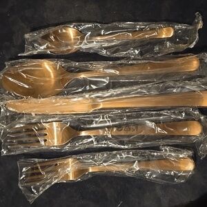 Enhance your dining experience with this elegant rose gold cutlery set. Perfect for any occasion, this set adds a touch of sophistication to your table.