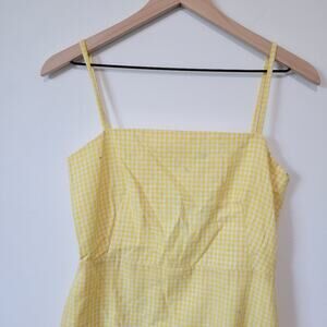 Features: Yellow gingham (76% Polyester, 20% Cotton, 2% Viscose, 2% Linen). Hourglass. Square neck. Sleeveless. Back zipper closure. 30" from shoulder to hemline. Imported.