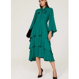 RTR . EUC. Elevate your office style with this gorgeous full tiered skirt, tie neck and bell sleeves. So good!!!