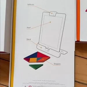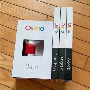 Includes Osmo Base along with Words, Tangram and Number sets. Does not include iPad. No missing pieces. Magnetic cases stick together for organization.