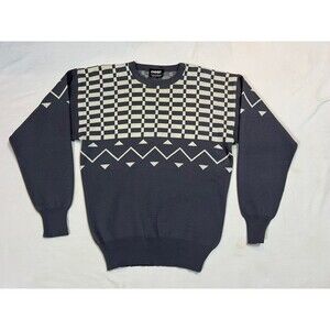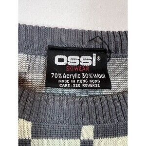 Ossi Skiwear Sweater Pullover Gray Vintage 1980s Large Geometric Wool Acrylic