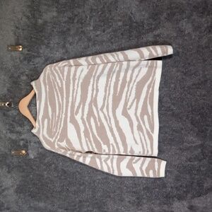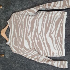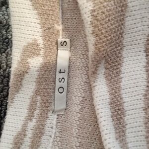 Elegant knit sweater by Ost in beige and white. Features a chic pattern for a stylish look. missing material tag. it's in good condition has snag on the bottom. measurements are in the listing...size small