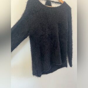 Ost Black Fuzzy Eyelash Long Sleeve V-Back Knit Sweater