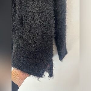 Ost Black Fuzzy Eyelash Long Sleeve V-Back Knit Sweater Size Small