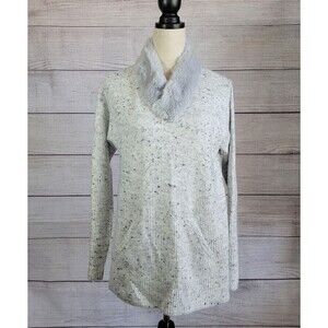 Ost Confetti Knit Faux Fur Collar Sweater Grey Size Small