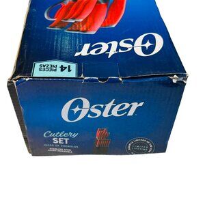 Oster 14-Piece Stainless Steel Cutlery Set With Red Handles & Wood Block