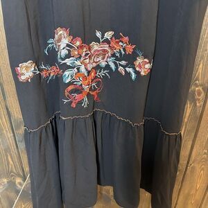Ostora Floral Embroirdered Maxi Dress Art to Wear Boho Hippie Size 56 Black