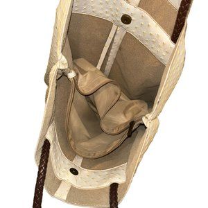Ostrich Imprint Large off white brown braided handles large pvc tote