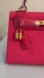 Ostrich embossed Genuine Leather 25cm handbag with Gold Hardware.