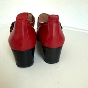 Osvaldo Pericoli Buckle Heels Red Leather Slip On Western 38 Italy Vintage 7.5