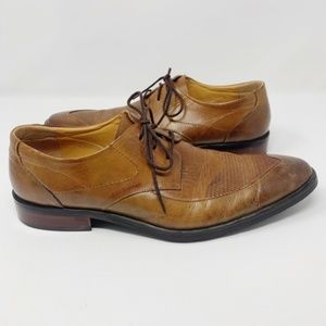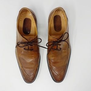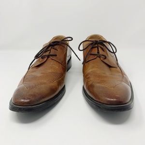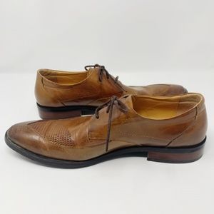Osvaldo Pericoli Italian leather derby dress shoes. Light brown with burnished toe. Leather upper & lining with man made sole. Comfort concept line. Made in Italy. 43 EU size or 10 1/2 USA. In great used condition with normal signs of wear; refer to photos.
