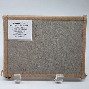 This exquisite enamel on metal artwork by renowned Ecuadorian artist Oswaldo Guayasamin depicts the tender bond between mother and child. A perfect addition to any art collection, this piece embodies Guayasamin's distinctive style and emotional depth.