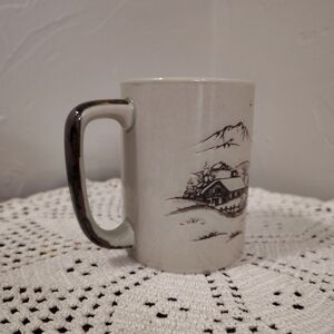 Otagiri Coffee Tea Ceramic Mug Snowy Winter Scene Forest Trees Cabin Church EUC