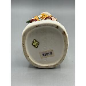 Offering an Otagiri Japan Christmas mouse bud vase. The vase is in very good pre-owned condition, with no visible chips or cracks. The poinsettia bouquet is included.