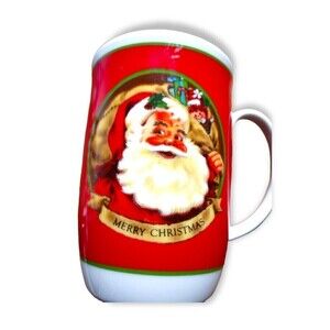Otagiri Japan Santa Merry Christmas Mug Coffee Tea Gold Rim Trim and Handle Gibson Greeting Card Design Mint Condition No chips, scratches or cracks