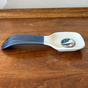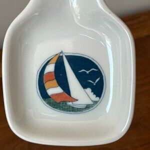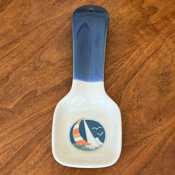 Otagiri Vintage Sailboat Spoon Rest Blue Handle Japan Ceramic Ocean Beach 9"