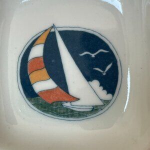 This spoon rest is in very good pre-owned condition. Please ignore the reflections on the handle - it's in great shape. The sailboat scene has a minuscule dot of paint wear on the blue sky as shown in the last photo.