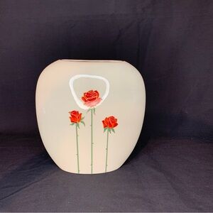 Otagiri Wide Pocket Elegant Beige Vase With Long Stems Red Roses