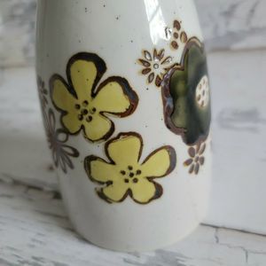 Approximately 9 inches tall. Otagiri hand painted Japan vase wine challace pansy yellow green cream brown flowers speckled. Excellent condition, no chips or cracks. On the lip, you can see through the brown glazing, but it is not a crack. MCM Mid Century. Grannycore, cottagecore, grandma core. Please see detailed pictures!