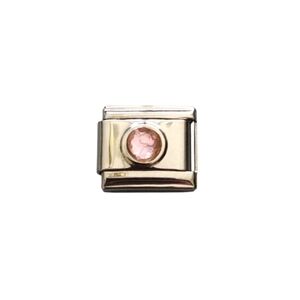 Modular Spring Loaded Links Slide Open To Reveal A Hook That Connects To The Next Link, Creating A Fully Customizable Bracelet. Round Pink stone also October's birthstoneCharmlink for Italian Charm Bracelet Enamel 9mm Stainless Steel.