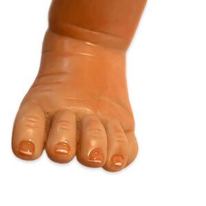 Hand-Painted Details: Every detail contributes to its realistic charm, including: Subtly painted nails and toes. Delicate eyelashes. Sweet, light pink painted lips. Highly realistic skin tone with subtle variations between the limbs and body, mimicking a real infant's complexion.