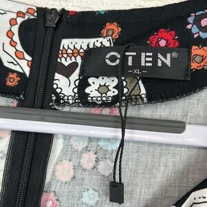 Oten Fit Flare Dress Women’s XL Black Sugar Skull Day Of Dead Pin Up Hot Topic