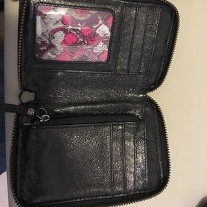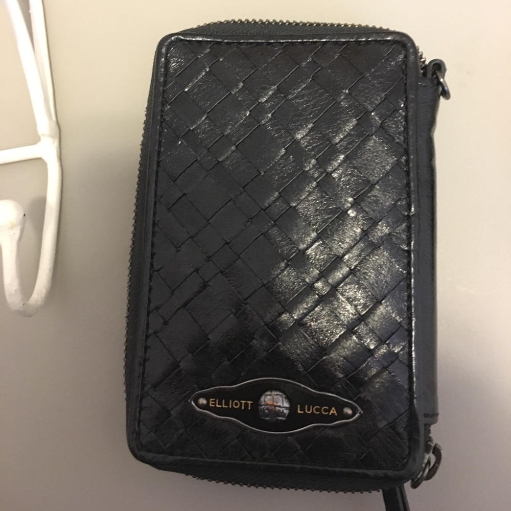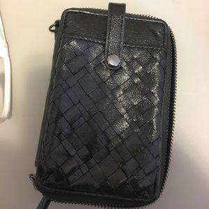 Cell phone, money, and credit card holder. The pattern is black weave.