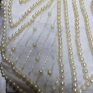 Absolutely spectacular cream colored silk vest embellished all over the front with pearls and beads. Has tie belt in back to adjust fit.