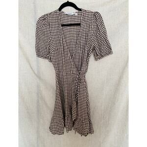 & Other Store Brown Gingham Mini Wrap Dress Size 8