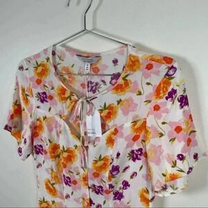 & Other Stores Mini Floral Cut Out Button Down Dress