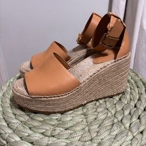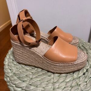 & Other Stories Beige Tan Leather Open Toe Platform Wedge Espadrille Sandals