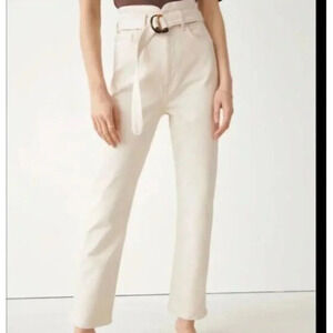& Other Stories Belted Straight Jeans Cream Size 8 High Rise Straight Ankle