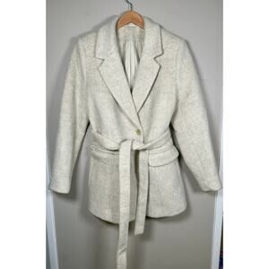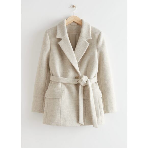 Relaxed wool blazer secured with a tonal self-tie belt.