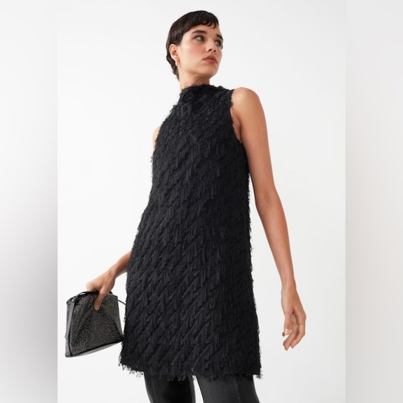& Other Stories Black Feather Embellished A-Line Dress Size 6 EUC