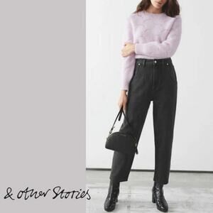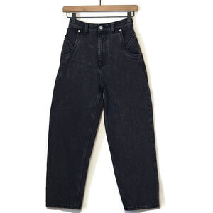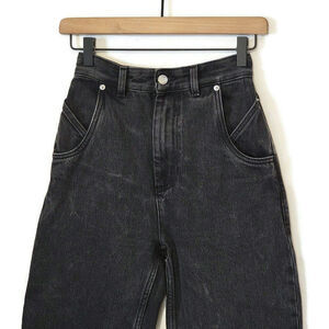 Chic black jeans with a wide leg design. High-waisted fit. Perfect for versatile styling.