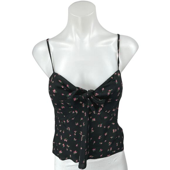 & Other Stories Black Floral Tie Front Sleeveless Cami Camisole Crop Tank Top 4