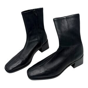 & Other Stories Black Leather Square Toe Ankle Boots Women’s Size 9