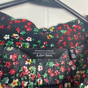 & Other Stories Black Red Floral Button Down Blouse Career Workwear Fall Size 8
